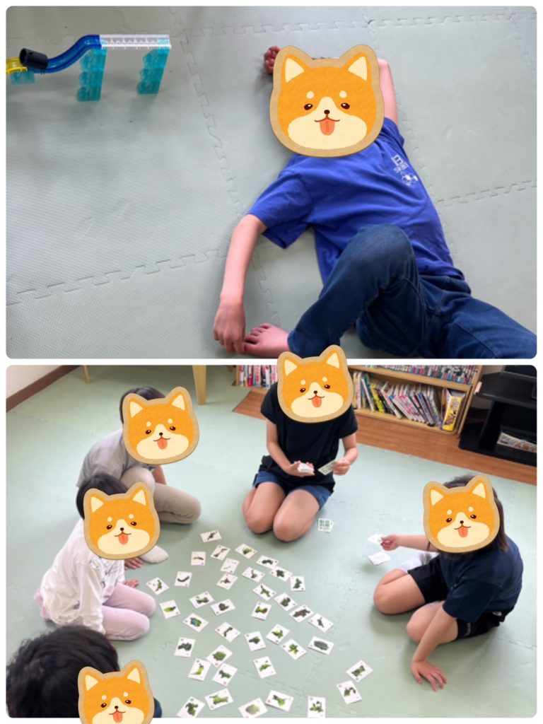 下の写真は「都道府県カルタ」です。このカルタをするだけで47都道府県の名称・形・特徴などを覚えることができます。テストが近いあるお子様が「これはテスト範囲だ!」と確認しながら取られていました。遊びの中にも勉強をうまく交えることができました!