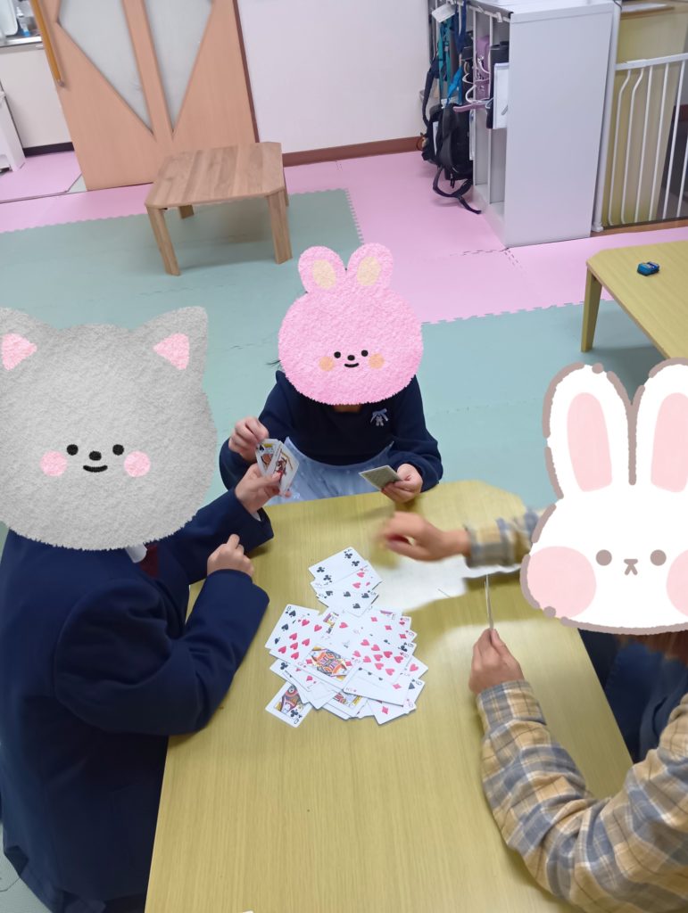 真ん中のお子様は最初、年上のお友達と支援員がババ抜きをしている様子を興味津々に見ていましたが、途中から参加し見事勝利をおさめていました👏