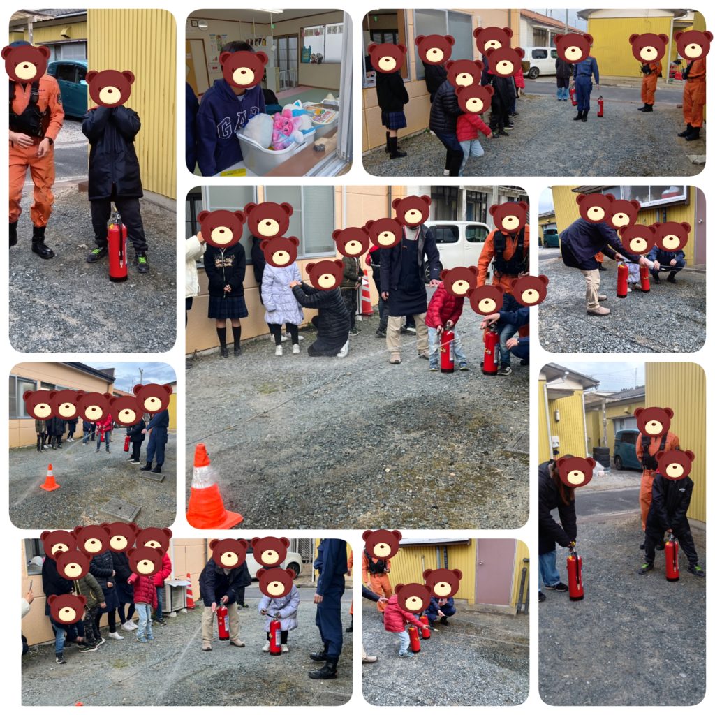 消防署の方が3名いらっしゃって、水消火器による消火訓練、救急救命の心臓マッサージを行いました。